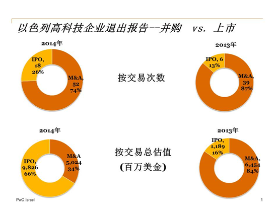 我们看一组来自PwC Israel出品的《以色列高科技企业2014年退出报告》( Israel 2014 Hi-Tech Exit Report)的数据:
